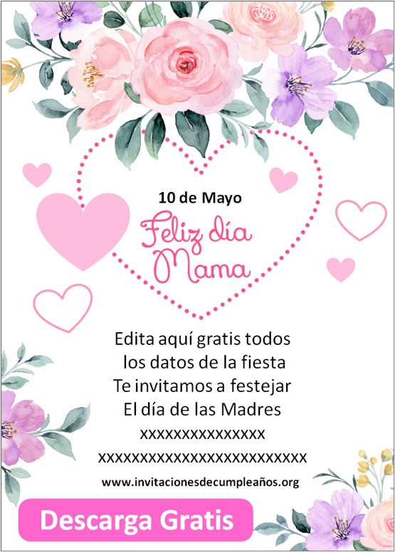 [+16] Invitaciones DÍA DE LA MADRE para editar Gratis, Podes crear online tu invitación para imprimir, enviar por Whatsapp, Facebook