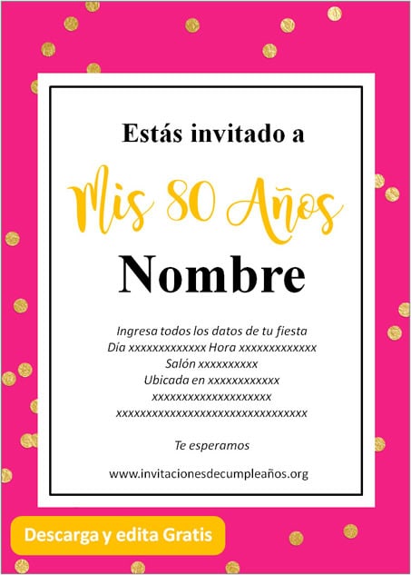 Invitaciones de 80 años para editar gratis