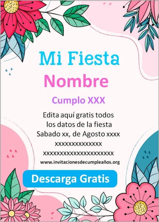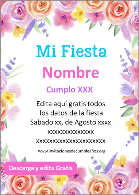 [+6] Invitaciones de cumpleaños de FLORES para editar Gratis, Podes crear online tu invitación para imprimir, enviar por Whatsapp, Facebook