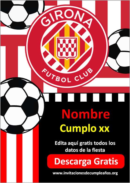 [+6] Invitaciones de Cumpleaños de FÚTBOL GIRONA para editar GRATIS, Crea online tu invitación para imprimir, enviar por Whatsapp, Facebook
