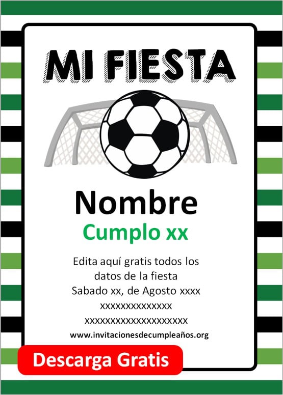 [+12] Invitaciones de Cumpleaños de FÚTBOL para editar GRATIS, Crea online tu invitación para imprimir, enviar por Whatsapp, Facebook