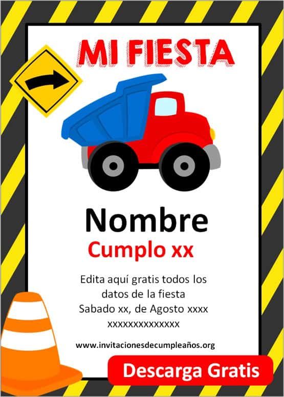 Invitaciones de Máquinas de Construcción para editar de Cumpleaños