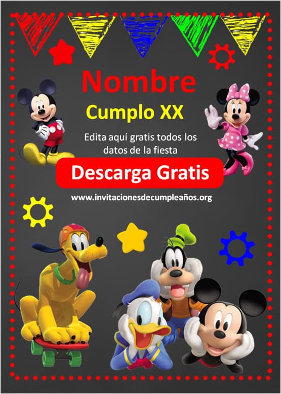 [+12] Invitaciones de Cumpleaños MICKEY MOUSE para editar GRATIS, Crea online tu invitación para imprimir, enviar por Whatsapp, Facebook +
