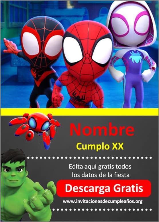[+8] Invitaciones de Cumpleaños Spidey y sus sorprendentes Amigos para editar GRATIS, Crea online tu invitación para imprimir o enviar por Whatsapp
