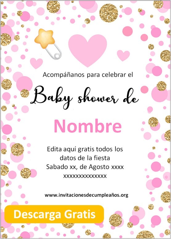 Tarjetas de baby shower para niña gratis para editar, personalizar, imprimir con excelente resolución de imagen, Podes crear y armar online tu propia invitación de baby shower con texto personalizado.