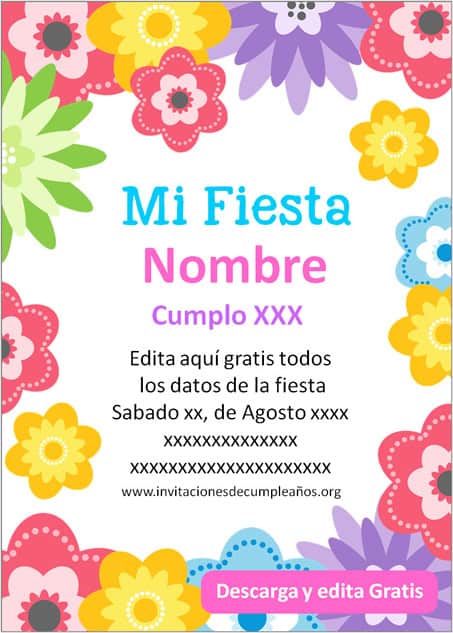 Nuestras plantillas de invitaciones de cumpleaños gratuitas de niña están en formato pdf, Solo tienes que elegir el diseño dentro de nuestro listado modificar e imprimir, para modificar las invitaciones de cumpleaños de mujer no necesitas experiencia solo tener el programa adobe reader el cual es gratuito el cual tienes muchas opciones simples para modificar la invitación.
