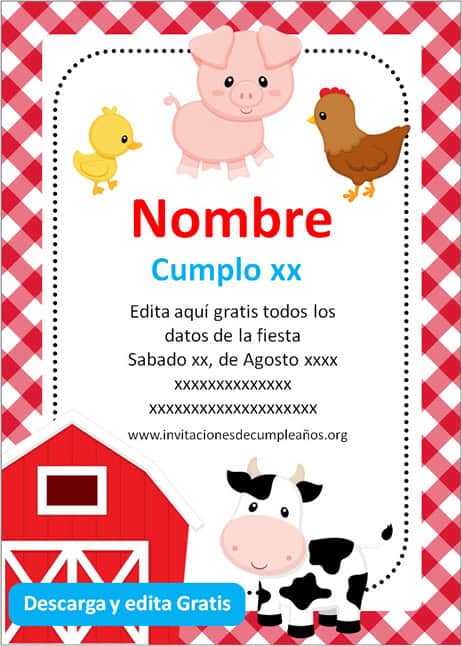 Sencillas plantillas para invitaciones de granja en caso que no sepas como expresar lo que lleva una invitación de cumpleaños te ofrecemos opciones de personalización sencillas. No te pierdas nuestra colección de Invitaciones de Cumpleaños para niños imprimir y editar gratis