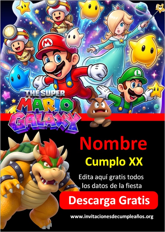 invitaciones de mario bros galaxy para editar gratis